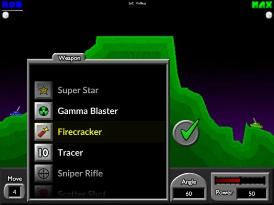 Experience the thrill of launching volley after volley of powerful and fun weapons across the battlefield, using very simple controls. Select your angle, power, and FIRE! Your arsenal of unique and useful weapons includes: Napalm, Firecracker, Skipper, Cruiser, Dirt Mover, and dozens more! This is the light-hearted game of heavy artillery for everyone.
