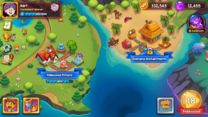 ● Enchantment Shop: Blend squid inks, stamp scrolls, and train birds to carve runes.