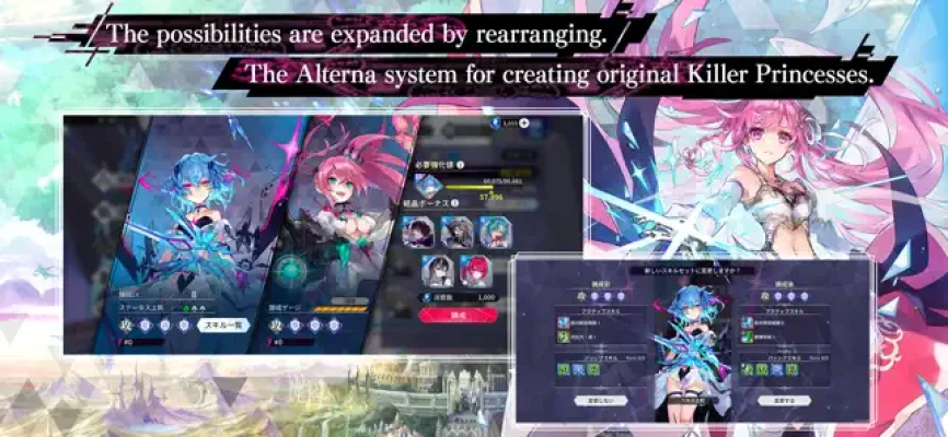 By partnering with another Killer Princess through Alterna, a more powerful Killer Princess with unique stats and skills can be created!