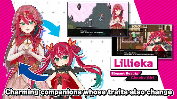 Alter your team in turn-based battles between adult and child states to alternate between attack or support types! Utilize a wide range of formations and elements, including equipment and passive skills, to strategically navigate battles.