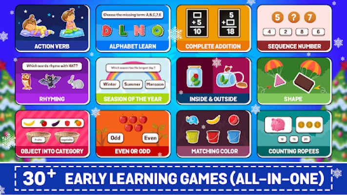 Unlike most toddler kids games in preschool learning, where you are limited to a few toddler preschool activities, our toddler learning games include multiple learning and playtime activities, including: