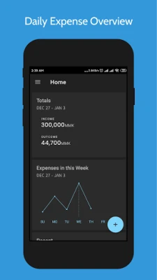 Weekly expenses are presented as simple Graph.