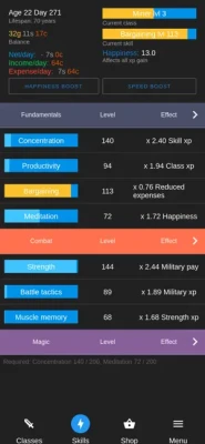 Will you decide to take the easy route of doing simple commoner work? Or will you go through harsh training to climb the ranks within the military? Or maybe will you decide to study hard and enrol in a magic academy, learning life-impacting spells? Your career path is open-ended, the decision is up to you.