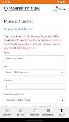 Bank on the go, anytime, anywhere with the Prosperity Bank mobile app. Available to all Prosperity Bank online banking customers, the Prosperity Bank Mobile App allows you to check balances, make transfers, make deposits and find locations. Manage Your Accounts Quick access to your account balance, recent transactions by date, amount, or check number.