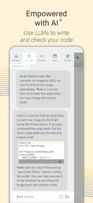 ✓ Professional Programmers: AI support combined with code completion and checking makes some real mobile development possible even on a mobile device. Run the most sophiscated code with our custom Python build and even deploy it to the other users of the app