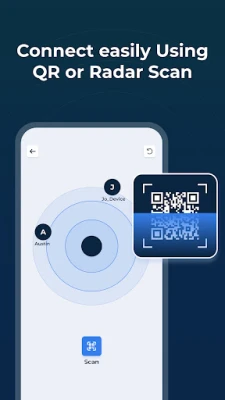 Simple Send & Receive Buttons: Just tap 'Send' or 'Receive' – it's that simple! Choose between sharing via device, web sharing, or also user can scan a QR code for web URL.