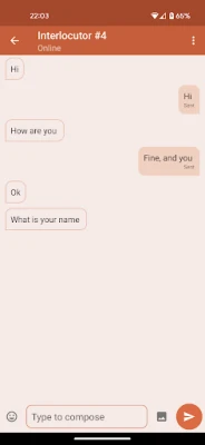 Just select the search criteria for an interlocutor and the application will find an appropriate interlocutor, who is online.