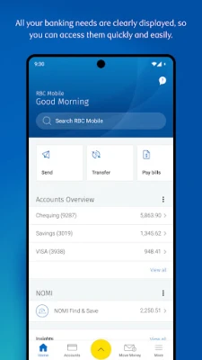 Exclusive to the RBC Mobile app, NOMI plays a big part of the app experience. NOMI Insights help you manage your day-to-day finances with personalized tips and spend trends. NOMI Find & Save helps make saving easy by taking a look at your spending habits to find a little extra money and saves it for you – so you don't have to.