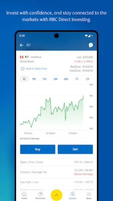 RBC does not sell, promote or otherwise provide financial services or products referred to in this app outside of Canada. You should not access this app if you are not an existing client of Royal Bank of Canada, RBC Direct Investing Inc. or RBC Dominion Securities Inc.