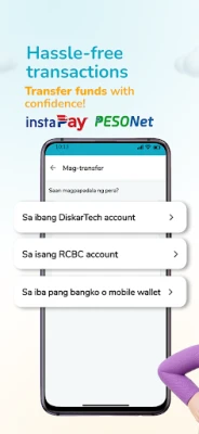 ● Transfer funds for as low as Php 8 (but free for DiskarTech to DiskarTech and RCBC to DiskarTech or vice versa transactions)