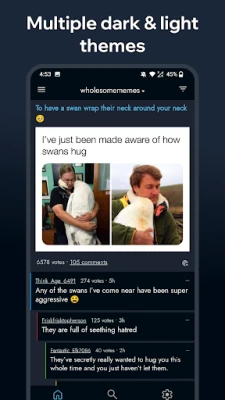 2. Native Video, GIF and Gallery support: Supports Reddit, Imgur, Giphy etc GIFs natively. Download Reddit Videos and GIFs easily and save to your phone.