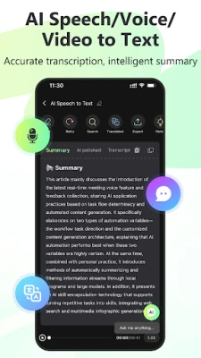 Effortlessly convert audio or video files into text with a single click. Or directly record the meetings or conversations and turn them into text. Our advanced AI also provides dialogue transcription, text polishing, summarization, and translation to meet all your transcription needs.