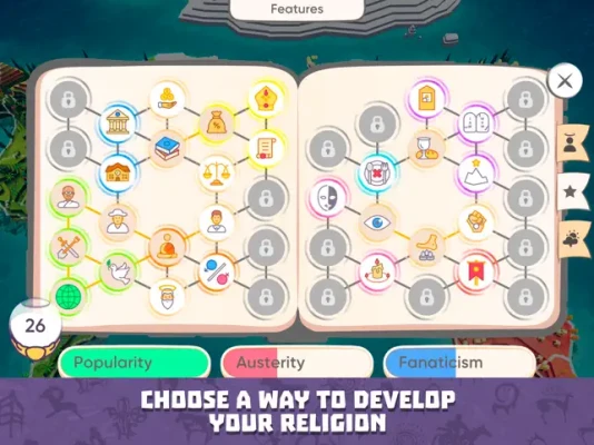 Humanity has always felt an irresistible need to believe in something greater than ourselves. It has sought comfort in the darkness—a light that would illuminate their path through the fog of millennia. For millions of people throughout the ages, this light has been and remains faith. Religion has become the beacon that has allowed many to find meaning in this universe, withstand the storms of change, and reach the shores of happiness. There are many religions in the world, each responding to the challenges of the times and changes in its own way. But how else could this process have unfolded? What other diverse and intricate forms have human beliefs and convictions taken? You can find the answers to these questions in our new game. Create your unique religion. See how well it responds to the challenges of the times and whether it can withstand trials and bring humanity to unity.