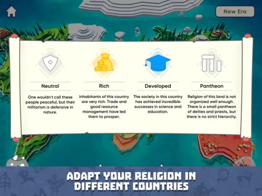 Acquire various abilities, from different methods of spreading your religion to divine miracles. Adapt to different countries, events, and the challenges of the times.