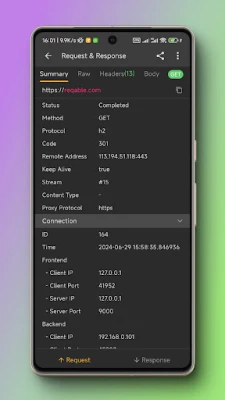 Traffic inspection can be performed independently without relying on the desktop. You can view the captured HTTP protocol message in the app, reqable provides many views, such as JsonViewer, HexViewer, ImageViewer and so on. And you can perform many actions on the traffic, like repeat, share to someone, save to phone, etc.