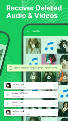 Restore deleted messages or recover deleted media files with Recover Deleted Messages App. Don't get frustrated if your friend deletes a message before you read it. Now you can easily recover deleted messages by scanning your notifications. Just install our Restore Deleted Messages App and recover deleted text messages with this efficient App. Now you are able to recover deleted chat text messages, all media files photos & videos, audios, stickers & documents etc.