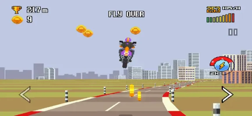 • Experience high octane old school action on your phone or tablet • Complete daring challenges and compete with your friends or the whole world for the highest scores • Explore six unique environments ranging from a hot desert freeway to a futuristic moon base • Customize your playstyle by choosing from a diverse garage of 10+ bikes and by upgrading various powerups • Embrace the nostalgia rush caused by stylish pixel art visuals and chiptune soundtrack