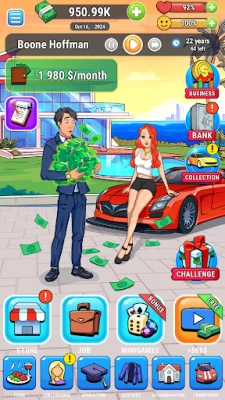 Finish college and start your career from the street hustle beggar. Upgrade your level of knowledge. Select from different courses from a sales manager to law courses. Do anything, to get a faster promotion. Money simulator game is waiting for you! Build your business empire!