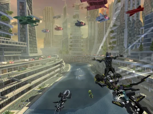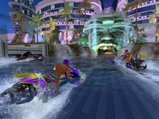 Experience the future of illicit hydrojet racing, where armored riders kick out death-defying stunts over massive waterfalls, dodge cops through public waterways, and boost at breakneck speeds across surging waves.