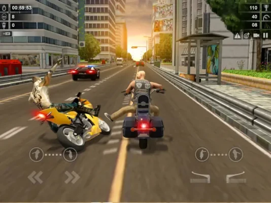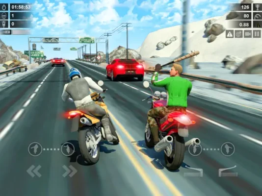 Ride your motorcycles on busy highways while you fight, punch, slap, and kick racing rivals on the track. Dodge traffic on your dirt bike with blazing fast speed. Be a highway drifter and zoom down a busy highway passing by cars. Hustle your way through the ranks of a bandit motorbike gang in this racing game.