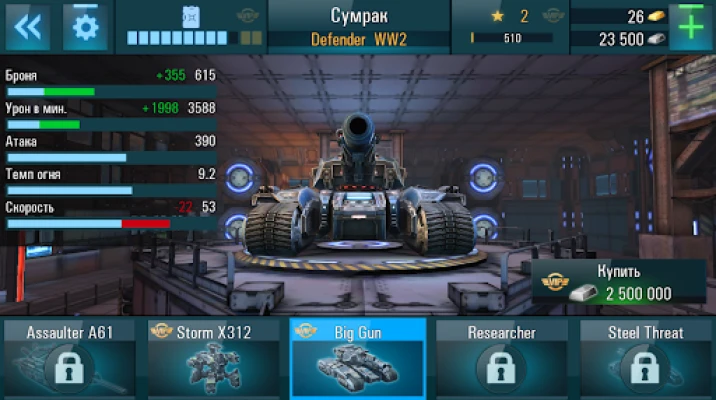 • Multiple robots and tanks modernization options. Create your unique armored machine! You can upgrade camouflage, guns, armor, engine, chassis, and more. Open and buy new war machines by collecting silver and gold on your missions.