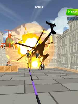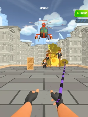 Shoot your hook and pull down helicopters, buildings, or even the bad guys themselves, then toss them into one another to complete each level.