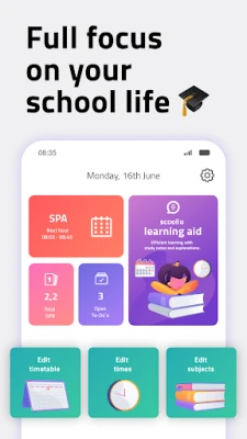 100% scoolio – 0% advertising! The most important school organization features such as timetables, grade point averages, homework, and more in ONE single app. Everything you need for your everyday school life is completely ad-free and can be used offline. Your data is also safe here, as it is encrypted and nothing about you is tracked. scoolio Pro is the perfect school app.