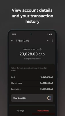 The Scotia Wealth Management app offers account access on the go. You can view your portfolio and account details, see your asset mix, download statements and tax slips and more.