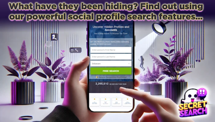 Secret Search is the fastest way to instantly discover social media profiles related to the name, email address, or phone number you enter. Simply search with just a name, email or number on Facebook, TikTok, Instagram, Twitter, Bumble, Tinder, Hinge or other popular platforms. Thanks to our advanced algorithms, results are instantly filtered and delivered instantly to you!