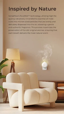 ○Natural Water-Free Atomization: SenseFlow's advanced ceramic atomization uses water-free technology to preserve pure essential oils' authentic fragrance, preventing decay and heat degradation for a superior aromatic experience.
