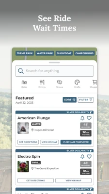 The Silver Dollar City Attractions App ensures you maximize every moment with unique features such as: