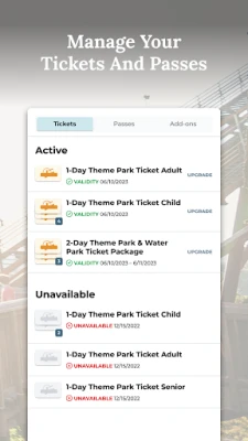My Silver Dollar City Account Integration - Link your day tickets, Season Passes, Bring-A-Friend tickets, add-ons and more for quick access. Utilize the app itself or add your tickets and passes to your phone’s digital wallet for easy entry and use at the parks.