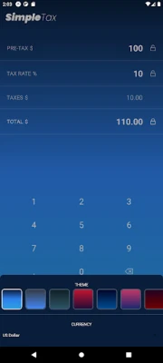 You can customize the application with color themes and choosing the currency which will automatically adapt the rounded calculated values
