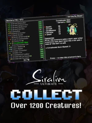 Siralim Ultimate is a monster-catching, dungeon-crawling RPG with a ridiculous amount of depth. Summon over 1200 different creatures and travel through randomly generated dungeons to acquire resources, new creatures, and loot.