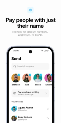 You don’t need a person’s address, email, routing number, IBAN, or bank details in order to pay them. If they’re on Sling Money, simply search for them by name and send money directly to them in seconds.