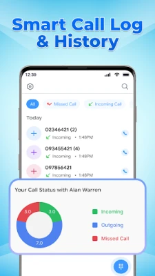 - View full call log including incoming, outgoing, and missed calls
