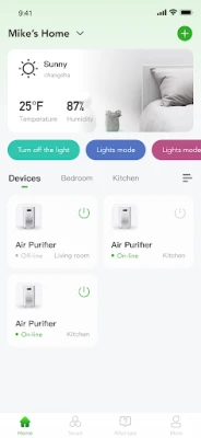 1. Control your home environment in time, bring you a fresh and comfortable home 2. 1 APP control: control multiple devices with one App 3. User Friendly: Set a timer for 1- 12 hours whenever you like. 4. Device sharing: One tap to share devices among family members 5. Easy connection: easily and quickly connect App to devices