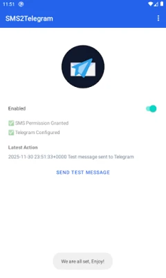 This app simply forward incoming SMS to Telegram, using your own Telegram Bot API Key. Nothing less, nothing more.