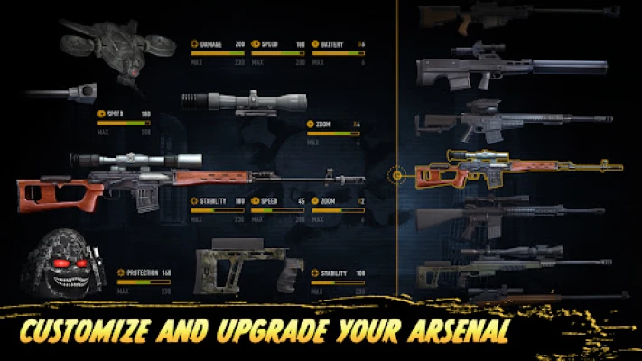 • Develop your Sniper Career, from recruit all the way to the rank of Phantom, with a variety of daily tasks and a detailed ranking system. Unlock and upgrade modern Professional Equipment: sniper rifles, ammunition, camouflage and special equipment.