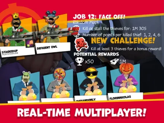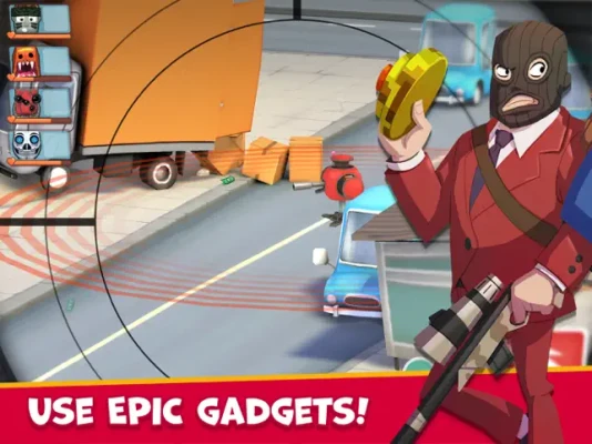 Multiplayer Asymmetric gameplay. Two Unique ways to play, as the SNIPER, take out the THIEVES and protect you CASH from being taken. As the THIEVES