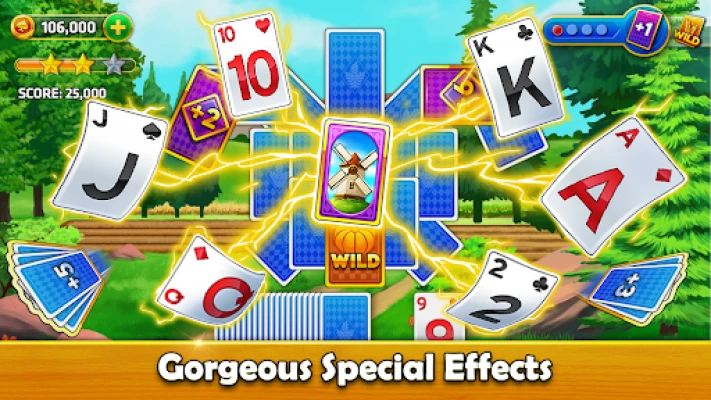 Follow the familiar rules of solitaire tri-peaks: choose cards one higher or lower than the current pile card. Clear the board to win the level. The combination of solitaire and farming brings a refreshing twist to classic patience games.