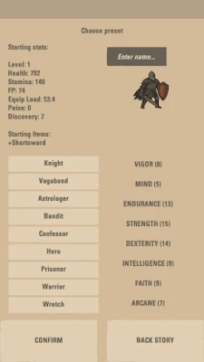 Level Up Stats like strength, dexterity, endurance, and faith.