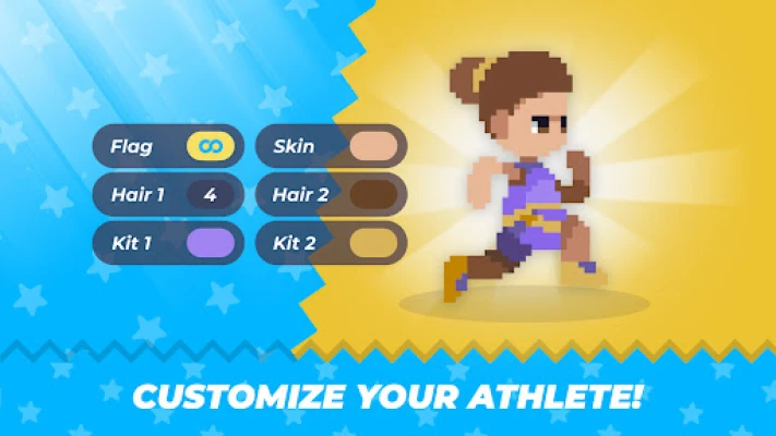 • Customize your athlete's look as you compete in events brought to life with vibrant pixel art graphics!