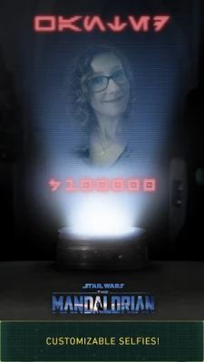 Take and share a Star Wars “selfie” in various iconic costumes and settings, including Jedi, Princess Leia (with hair buns), Han Solo’s carbon freeze, and more