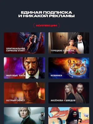 Подписка на онлайн-кинотеатр START дает возможность смотреть весь каталог с новинками кино, эксклюзивными сериалами и премьерами. И всё это по цене пары билетов в обычный кинотеатр.