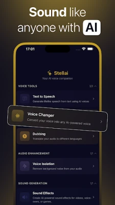 Transform your voice into any of 250+ celebrity and professional voices with a single tap. Whether you're creating content, pranking friends, or producing voiceovers, Stellai gives you studio-quality voice transformations powered by AI.