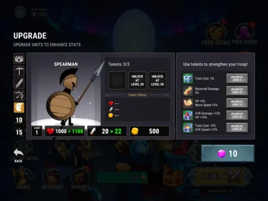 - Build miners to gather precious gold and gems which you can use to grow your Stick Army: Swordsman, Spear, Archers, Wizard Stick, and Giant Stick