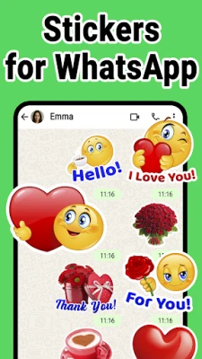 Easy-to-use app with stickers and emojis for WhatsApp - WASticker. You can use our sticker packs or create your own stickers with the sticker maker. The app includes love stickers, text stickers, happy birthday stickers, emojis, and animated stickers for chat, and many free stickers packs for WhatsApp.
