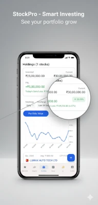 StockPro – AI Stock Screener is a powerful stock market analysis and investing insights app that helps traders and investors analyze stocks, compare stocks, track portfolios, and discover market opportunities across NSE, BSE, and US markets.