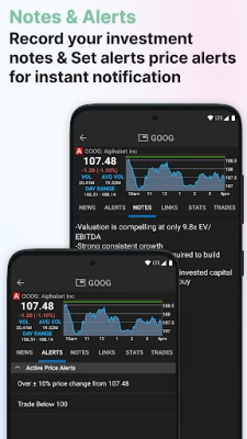 ✔ Full Screen Charts and Browser: Instantly toggle to full screen for charting or reading news articles about your stocks.